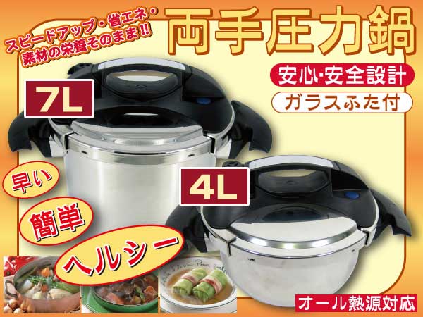 【代引不可/送料無料】-両手圧力鍋2個セット(4L型+7L型) DSJ22-4L+7L 【あったか調理器具大特集】