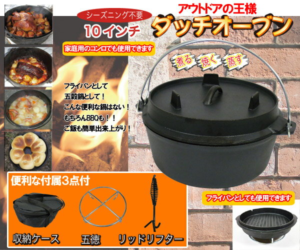 この商品は1個入りです。この商品は代金引換でのお支払いが出来ません。この商品は送料B/630円となります。北海道・沖縄県・離島へのお届けの場合、別料金(お見積もり)となります。五徳がふた置きや、フライパン置きとして使えて便利!ふたはフライパンとしても使用でき、料理の幅が広がります。ご家庭のコンロでもご使用可能!収納ケース付きだから、持ち運びが楽に出来ます。■製品サイズ/外形・?25.8×13.5cm(ふた含む)、内径・?24×9.7cm■容量/約3.8L■重さ/約4.9kg耐熱温度/395℃■材